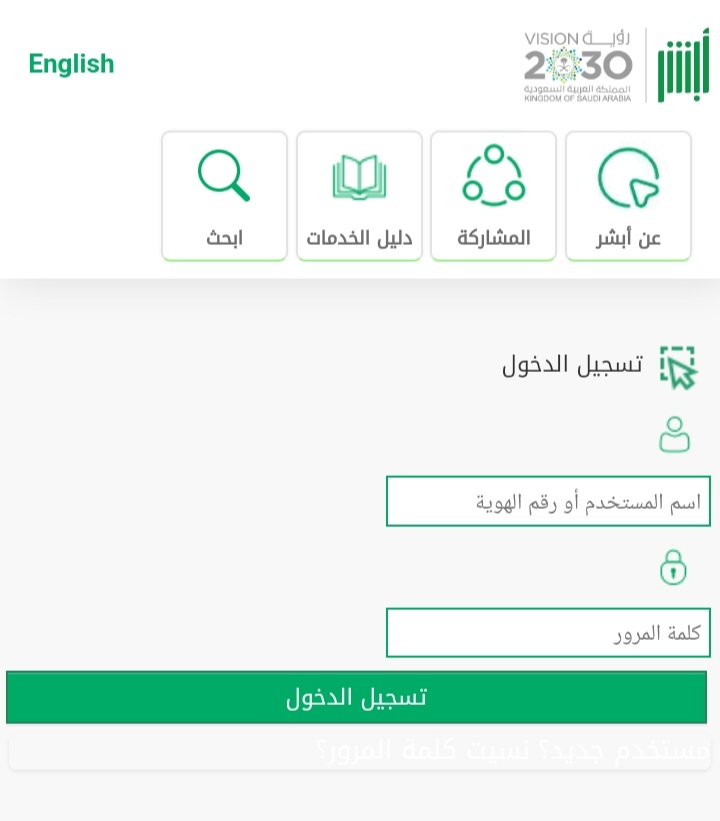 - تسجيل الدخول في منصة أبشر عن طريق إدخال البيانات الآتية: