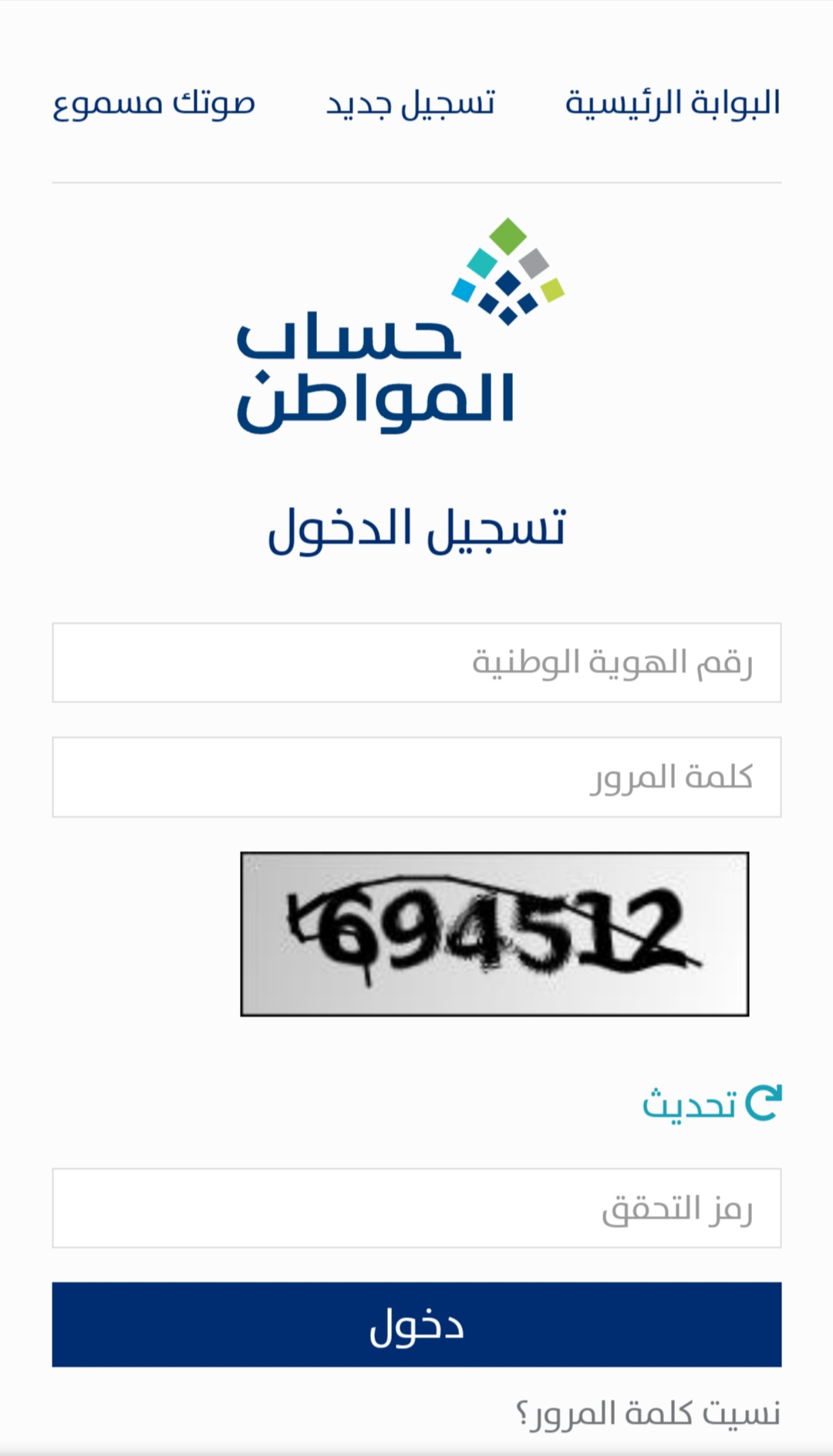 - تسجيل دخول حساب المواطن برقم الهوية