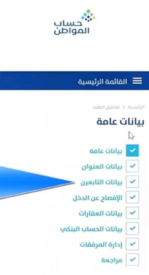 - تسجيل الدخول في برنامج حساب المواطن.