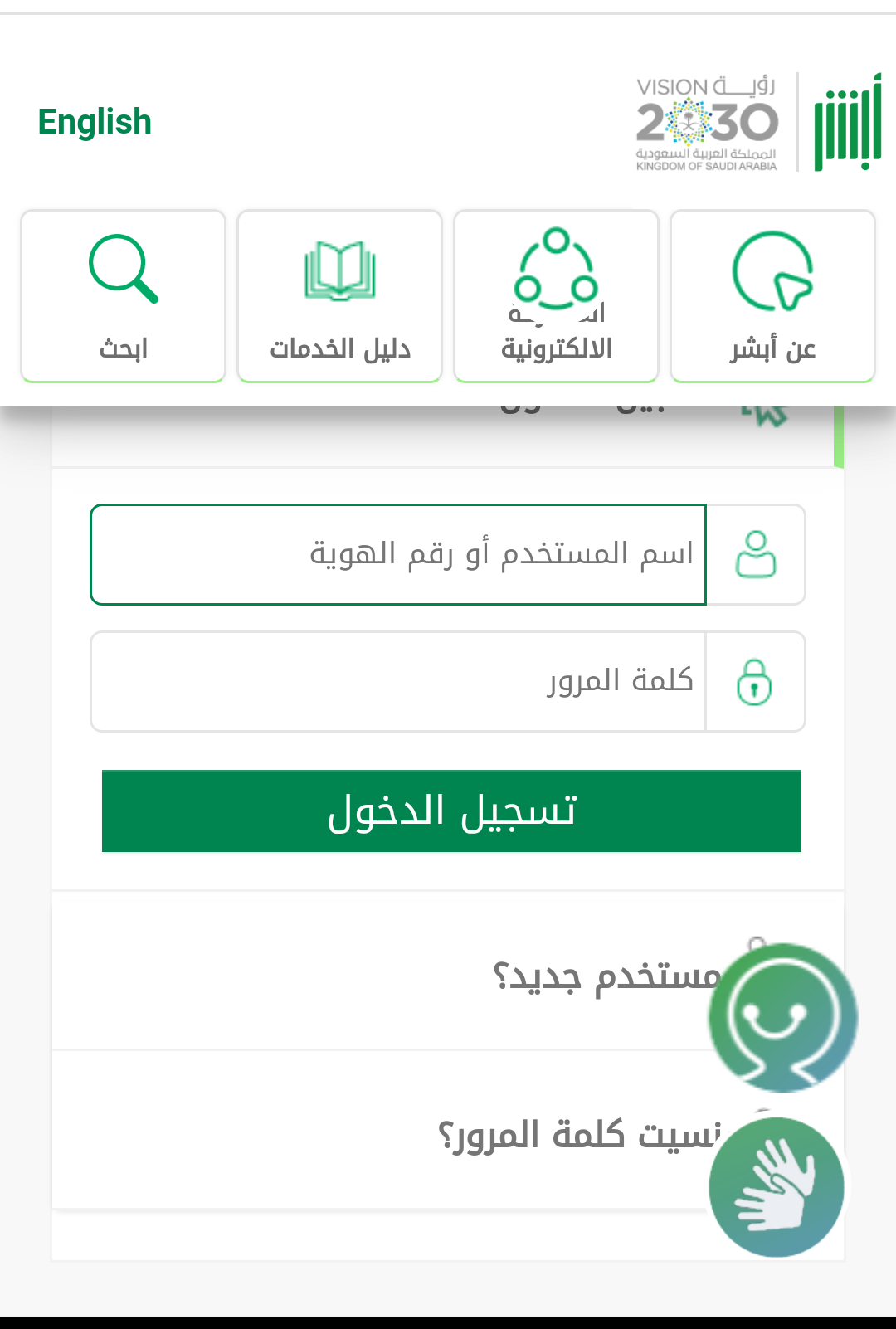 • إدخال اسم المستخدم أو رقم الهوية الوطنية.