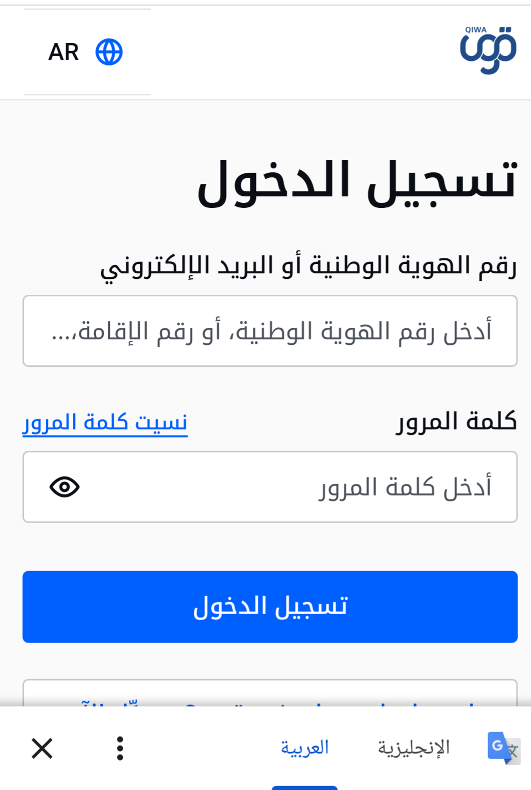 • الدخول إلى خدمة تَسجيل الدخول في مَنصة قوى “من هنا“.