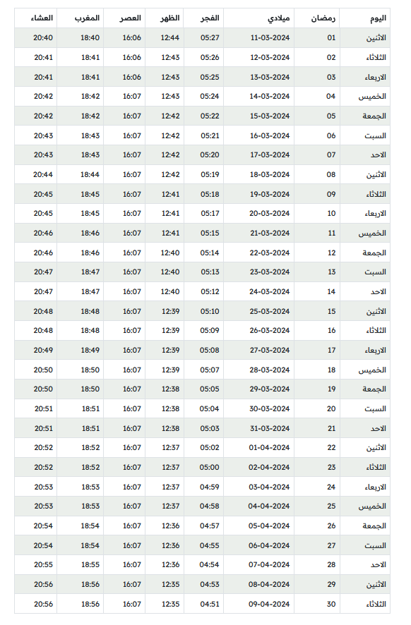 - تاريخ أول يوم رمضان في السعودية