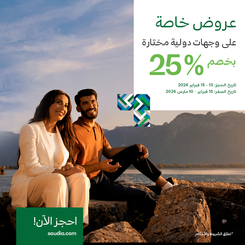 - يشمل العرض خصم بنسبة 25% على أسعار التذاكر لدرجة الضيافة، و15% على درجة رجال الأعمال.