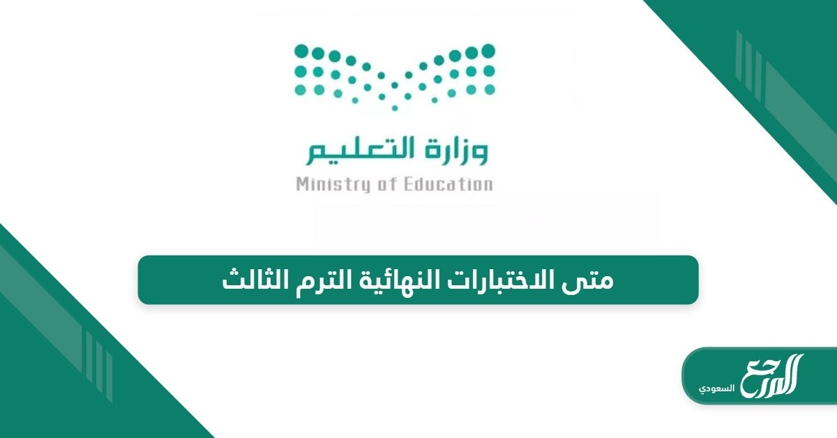 تم تحديد متى الاختبارات النهائية الترم الثالث من قبل وزارة التعليم في السعودية حيث تعتبر الاختبارات النهائية في الفصل الدراسي الثالث هي اختبارات نهاية العام الدراسي ويبدأ بعدها الطلاب عطلة الصيف، ولذلك يوضح موقع المرجع السعودي موعد اختبارات الترم الثالث النهائية بالإضافة إلى إدراج كم باقي على بداية هذه الاختبارات.