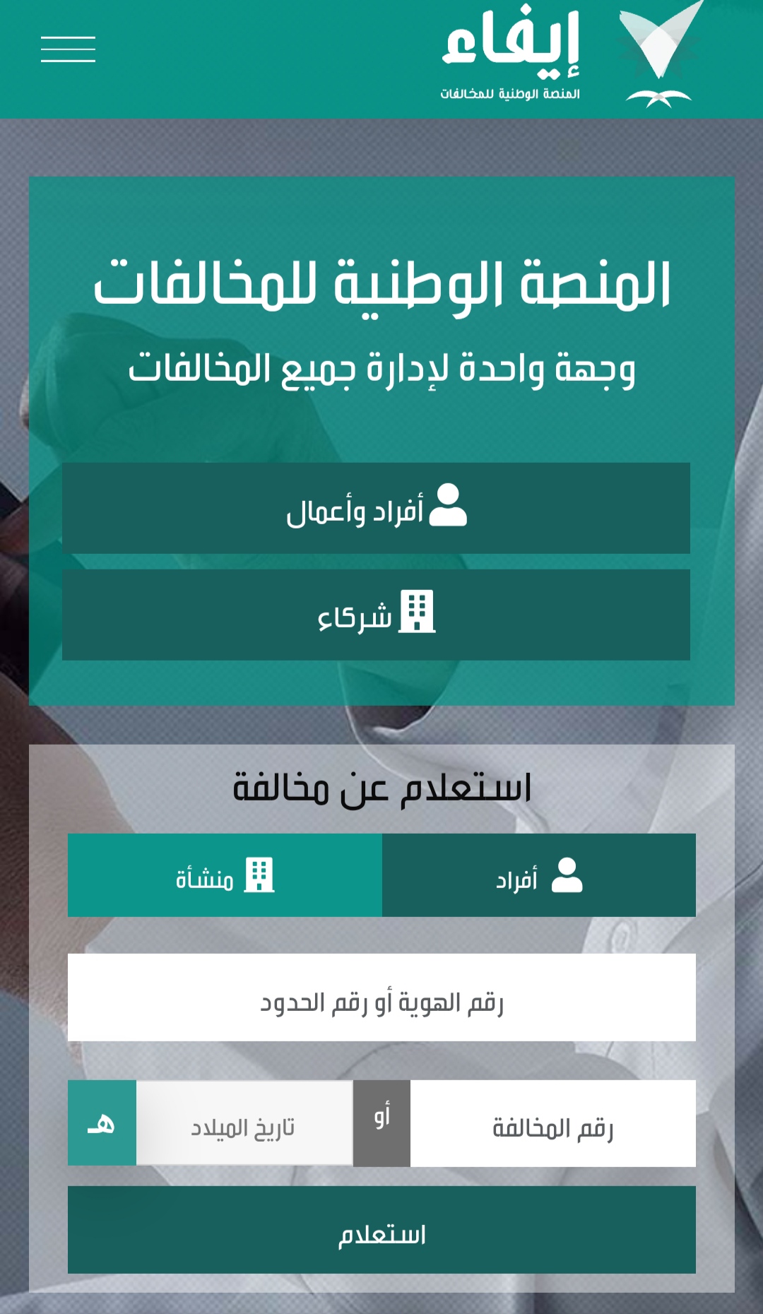 • اختيار استعلام عن مخالفة أفراد.